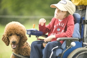 Flash Großpudel-Rüde, geb. am 26.09.2009 Flash wurde für Timo Rödig über den Verein zum Behindertenbegleithund ausgebildet. Die Ausbildung wurde Ende