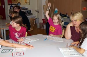 Danach wurde der Wissensstand der Kinder mit Hilfe des beim VDH (Verband für das deutsche Hundewesen) erhältlichen, kindgerechten Übungsheftes in Form eines Quiz erfragt. Für die richtige Beantwortung der Fragen gab‘s natürlich für jeden auch eine kleine Belohnung.