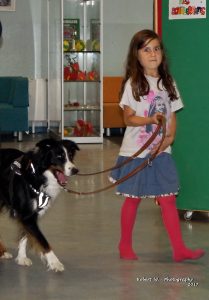 Übungen wie „Sitz“, „Platz“, „Pfötchen geben“, „Check“ und das Herbeirufen eines abgelegten Hundes wurden absolviert.