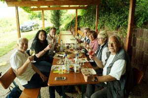 Nach ca. 1-stündiger Gehzeit erreichten wir die Bewirtungsstätte im Weinberg, wo wir bereits von Herrn Edling mit leckerem Essen und guten Weinen erwartet wurden.